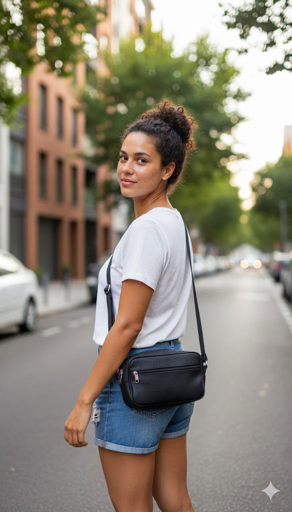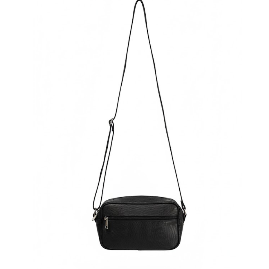 Su formato rectangular tipo "box camera" es ideal para quienes buscan un bolso compacto pero eficiente. Ofrece la organización esencial para tus objetos de valor: celular, llaves y documentos. La correa de hombro ajustable y delgada permite llevarla cómodamente cruzada o colgada, liberando tus manos. Es un básico versátil para el día a día, viajes o salidas nocturnas, gracias a su color negro que eleva cualquier outfit.