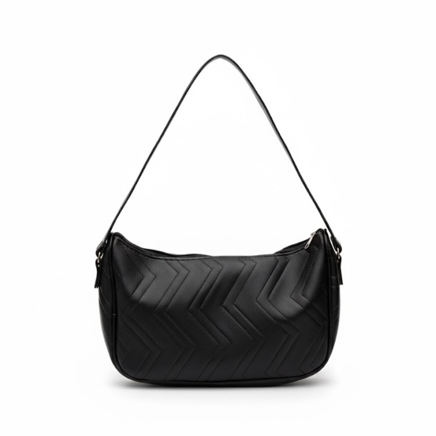 Su forma de media luna se adapta cómodamente al cuerpo, convirtiéndola en un bolso muy ergonómico para llevar al hombro. La textura acolchada en patrón de zigzag no solo es un detalle estético, sino que le otorga cuerpo al material. Es perfecta para llevar tus esenciales diarios (billetera, celular, anteojos y hasta una agenda!) con un toque de distinción. Su correa es de la longitud justa para llevarla como un bolso de hombro compacto, ideal para la noche o para el día a día.