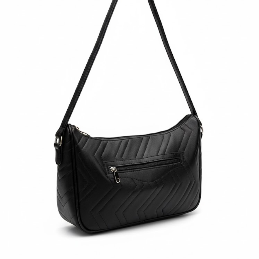 Su forma de media luna se adapta c贸modamente al cuerpo, convirti茅ndola en un bolso muy ergon贸mico para llevar al hombro. La textura acolchada en patr贸n de zigzag no solo es un detalle est茅tico, sino que le otorga cuerpo al material. Es perfecta para llevar tus esenciales diarios (billetera, celular, anteojos y hasta una agenda!) con un toque de distinci贸n. Su correa es de la longitud justa para llevarla como un bolso de hombro compacto, ideal para la noche o para el d铆a a d铆a.