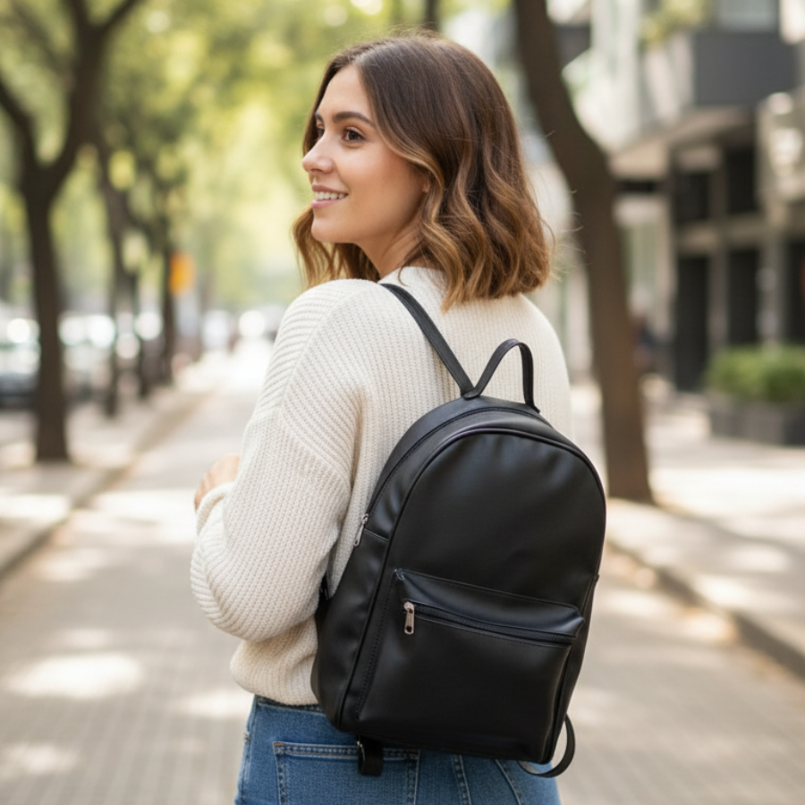 Su estilo clásico y la ausencia de detalles recargados la hacen increíblemente versátil, apta para la oficina, la universidad o el uso casual diario. Es lo suficientemente espaciosa para llevar cuadernos, una tablet o incluso una laptop pequeña, y su material liso es fácil de limpiar y mantener. El bolsillo frontal con cierre brinda acceso rápido a tus pertenencias esenciales. Un modelo cómodo y funcional que nunca pasa de moda.